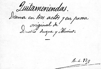 Pese a la abundancia de títulos de este catálogo solamente hemos podido consultar el texto de tres obras: dos originales de don Demetrio, Nubecillas de verano y Quitameriendas (esta última incompleta) y una traducción realizada por el escritor reinosano de una obra francesa. Cuando llueve y hace sol (1898).