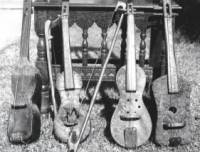 De pequeño tamaño, tiene las dos partes de los instrumentos de su clase : caja de resonancia y mástil. La caja tiene forma parecida a la de la guitarra, aunque hay variedad, generalmente está construida de madera de saúco, siendo la tapa superior, a veces, de piel o de hoja de lata. El mástil, al igual que el violín y a diferencia de la guitarra, carece de trastes. Tiene dos cuerdas, generalmente de crines de cola de caballo, de yegua no sirven. La curiosidad está en que éstas las humedecen con la orina y ello hace que al tensarlas se rompan con facilidad. En la actualidad se hacen de acero o de tripa. Cuando son de crines se han de frotar con resina para que el arco se deslice mejor y puedan vibrar y dar mejor sonido. Una vez dada la resina no se deben tocar con los dedos. Esa vibración se efectúa con el arco, aunque tiene forma recta generalmente, y las cuerdas son también de crines de cola que en este caso pueden ser de caballo o yegua.