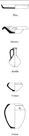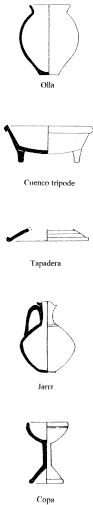 Cerámica de cocina. Bajo esta denominación incluimos los vasos cerámicos utilizados en las preparaciones culinarias, con independencia de otros posibles fines secundarios. Su empleo facilitó la elaboración de los alimentos en frío (morteros) o bien su exposición al fuego para aquellos que precisaran el aporte de calor. Éste es el caso de las ollas, platos, cuencos trípodes, morteros y tapaderas, que frecuentemente presentan en su superficie restos de hollín.
