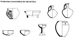 La unidad cultural que presenta el valle del Ebro en época romana se aprecia, asimismo, en la documentación en todo este ámbito geográfico de una serie de vasos que son el resultado de la conjunción de un modus faciendi típicamente romano con modelos heredados de la cultura celtibérica preexistente. De este modo se explica la presencia en el yacimiento de los dolia dotados de un labio horizontal pegado a la pared, de cuencos de paredes verticales y labios ligeramente engrosados, con paralelos en la llamada "cerámica pintada de tradición indígena" (forma Abascal 9) o las copas de fuste liso y borde ligeramente engrosado, formas claramente celtibéricas que aparecen morfológica y tecnológicamente adaptadas a los gustos romanos.