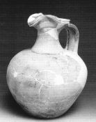 Encontramos diferentes tipos de jarras dependiendo de la forma de su boca y del número de asas que porten, Así, son especialmente frecuentes los oinochoes o nasiterna, jarras de boca trilobulada derivadas de modelos griegos. Fue un recipiente de gran éxito que se elaboró tanto en cerámica común como en terra sigíllata. La pasta con que fue realizado solía ser de color blancogrisáceo, bastante depurada, con desgrasantes de pequeño tamaño, Los restos calcáreos encontrados en el interior de algunos fragmentos inducen a pensar que se empleó fundamentalmente para conservar, calentar y verter el agua o la leche (3).