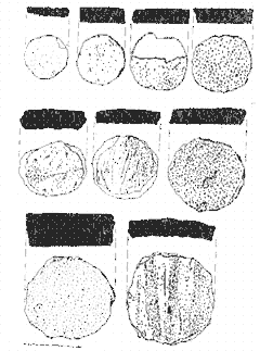 • Objetos relacionados con la diversión, como el único dado hallado en la excavación, además trucado para aumentar la frecuencia de salida del seis. En este mismo capítulo habríamos de incluir, aunque estén hechas a partir de fragmentos de teja, las fichas de juego circulares.