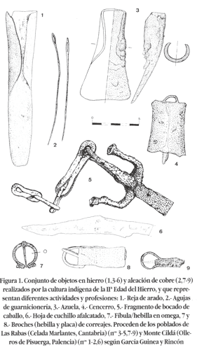 A la llegada del ejército romano a Cantabria las poblaciones de la IIª Edad del Hierro habían desarrollado una avanzada tecnología metalúrgica, tanto en lo que a fundición de objetos se refiere como a su diseño y decoración. De todas formas esta es una tónica general a la mayor parte de las sociedades que habitaban poblados fortificados de la vieja Hispania, producto de una muy larga tradición de experimentación y uso que arrancaba desde el más remoto Calcolítico.