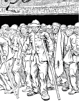 Por la estación donde los trenes hacen mayor parada había pasado ya un tren-hospital, un convoy de moribundos hacinados en coches de tercera clase, y los agonizantes tendidos en literas colgadas dentro de algunos vagones transformados en pobres zaguanes de la muerte de los que peleando con bravura por la patria se libraron de las balas enemigas, para caer vencidos por el hambre y las enfermedades productos del descuido y la imprevisión más punibles.