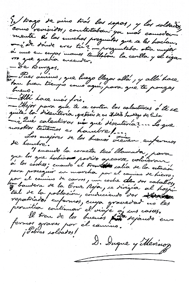 Los socios de la Cruz Roja y otras muchas personas llevaban caldo, leche, vino generoso a los coches y solicitaban la asistencia de los médicos. Porque, entre los buenos, los había que no podían bajar del coche y (ilegible).