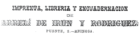 La denominación comercial es, como figura en el número prospecto de "El Ebro", la que se ofrece en el cuadro adjunto; se completa con lo siguiente: ?En este establecimiento se hacen toda clase de impresiones y cuantos trabajos de imprenta y de encuadernación se deseen. Gran surtido de papel y objetos de escritorio?.