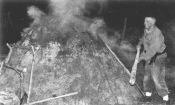 - Total que cuando se bacía tendría metro y medio largo de altura... o dos metros.. y cuando ibas a sacar el carbón se quedaba en.. en uno veinte... Cuando aquello se iban quemando los céspedes. Todos... Y se iba quedando la tierra ya, porque todos los días había que echála tierra... A los cinco días ya, que estaba con lumbre, llegaba un día que agotó... se limpiaba y quedaba ya solamente el carbón y la tierra...