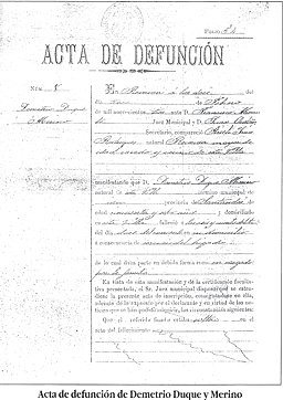 Murió D. Demetrio en la fría tarde del 12 de febrero de 1903. en su casa de la calle del Puente n° 33, de una cirrosis del hígado, según consta en el acta de defunción, cuando contaba con 58 años de edad.