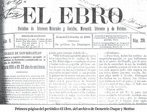 Sabedor Duque de la influencia de la prensa para la comunicación y cultura, en mayo de 1883 propone a su amigo D. Félix Rodríguez Alonso, a la sazón Secretario del Ayuntamiento, la creación como negocio de una imprenta. Don Félix le atiende en su idea y la instalan en la calle del Puente n° 2; en ella se tira el primer impreso: una esquela de defunción el día 12 de mayo. Durante el primer año de funcionamiento se fue ampliando la instalación y se montaron chibaletes, cajas bien surtidas, ramas para moldes y otros materiales propios para la impresión, consiguiendo que se adquiriera una máquina mayor. El día 4 de mayo de 1884 se publica el número prospecto de "El Ebro" y al siguiente domingo día 11 sale a la calle el número 1 -Reinosa tenía su primer periódico- se publicó los domingos, siendo su precio de suscripción por un mes 25 céntimos de peseta; 1 peseta y 50 céntimos por tres meses; 2 con 75 por seis meses y 5 pesetas por un año y para ultramar 10 pesetas anuales. El semanario se publicó durante seis años y medio hasta el día 28 de septiembre de 1890; fecha en que con carácter irrevocable presentó su dimisión como director: el número de ejemplares fue de 333. A don Demetrio le acompañaron en su andadura en el semanario reinosano D. Adolfo de la Peña y Alonso como redactor-jefe y D. Ramón Muñoz de Obeso como colaborador.