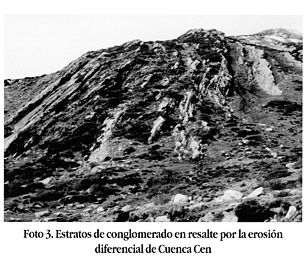 escarpados está escalonada por la alternancia de conglomerados y areniscas. En cotas más bajas, los afloramientos de calizas y vulcanitas paleozoicas entre las areniscas y pizarras, generan crestas y agujas que revitalizan el relieve (foto 4) y propician procesos kársticos asociados a la disolución de las calizas. Si la vertiente septentrional drena al Ebro, y por tanto al Mediterráneo, la meridional drena por el Pisuerga -Rubagón y Camesa- y el Duero, al Atlántico.