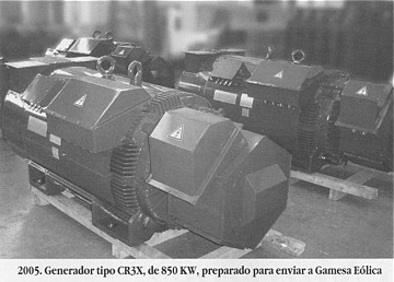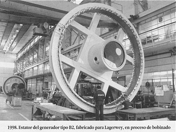 La necesidad de carga de trabajo impulsó la búsqueda de un nuevo mercado, el eólico, a través de una compañía holandesa, Lagerwey, que iniciaba sus pasos en la fabricación de turbinas de 750 Kw. Se iniciaba así la fabricación de generadores tipo B2 y posteriormente B2 Alpha, con un diámetro de casi 6 metros y un peso de 29 Tm. con destino a diferentes partes del mundo, aunque con mayor intensidad a Japón. El sistema constructivo de los generadores era de acoplamiento directo, es decir, sin reductora.