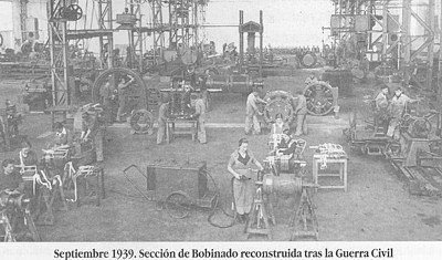 La década de los 40 es una época marcada por la escasez, la reconstrucción y por un fuerte sentido de superación. Durante la posguerra se reconstruye parte de la fábrica, se incrementan los contactos con WELCO, se organiza el departamento Comercial de la Sociedad y se instala la Escuela de Formación Profesional dentro de la Fábrica, lo que conduce a las primeras promociones de aprendices. Para entonces la fábrica se había especializado en la fabricación de motores de tracción, lo que intensificó las relaciones comerciales con Tranvías de Vigo, Metro de Madrid, Renfe y CAF.